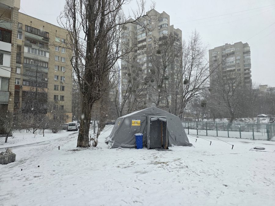 Найближчий пункт незламності знайти можна по дорозі до метро Лівобережна біля спортмайданчика: